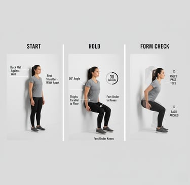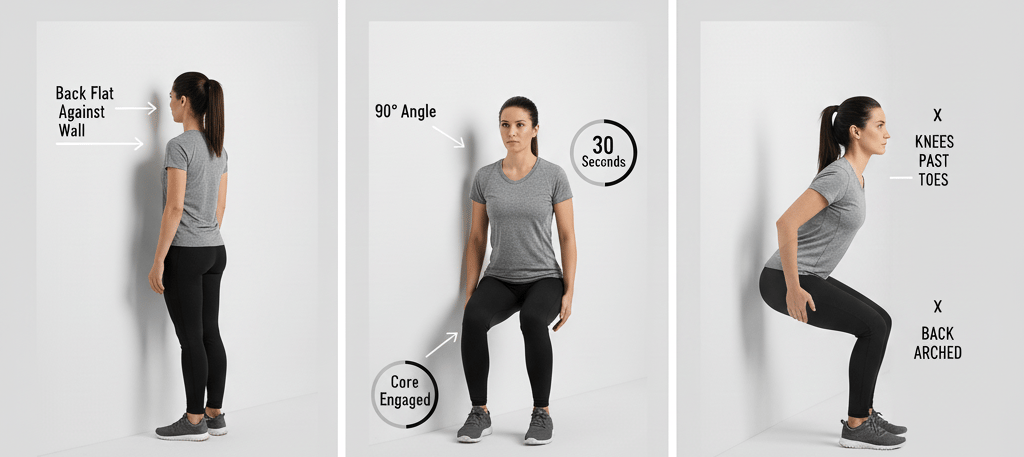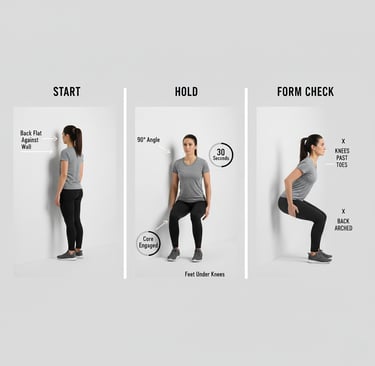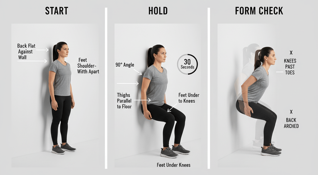 The wall sit is an excellent way to strengthen your legs without needing weights. Stand with your back against a wall and slide down until your knees are bent at a 90-degree angle, as if sitting in an invisible chair. Hold the position for 20–30 seconds, keeping your core engaged. This exercise targets the quadriceps, hamstrings, and glutes, while also improving mental focus and endurance.