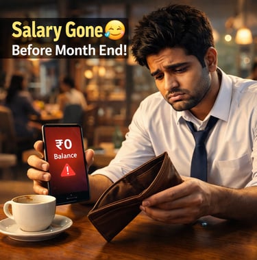 income first (salary after tax). .Categorize spends: Food, rent, fun, transport. .Spot leaks. Example: ₹5,000 on Ubers? Walk or use metro.